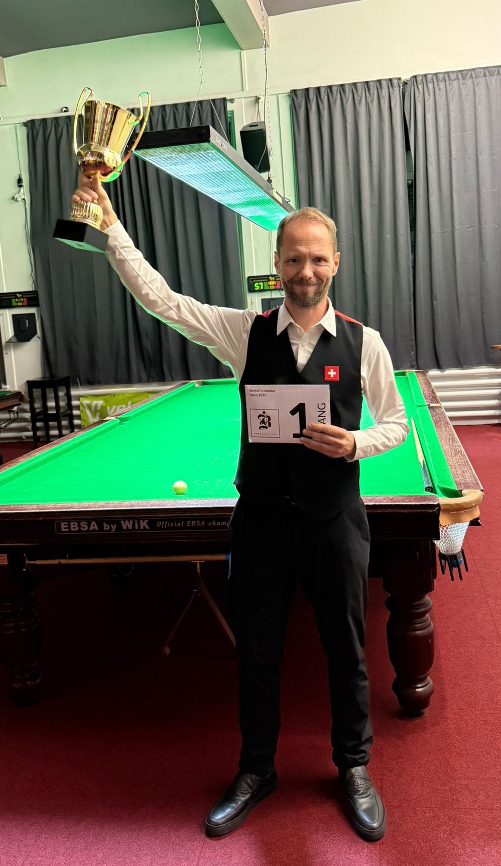 Risto Väyrynen gewinnt das Benteli's Snooker Open in extremis. Im Finale gegen Jenson Schmid zeigt der alte Fuchs seine Klasse und holt im Decider 4 Snooker für eine respottet Black auf und locht danach die schwarze Kugel zum Sieg.