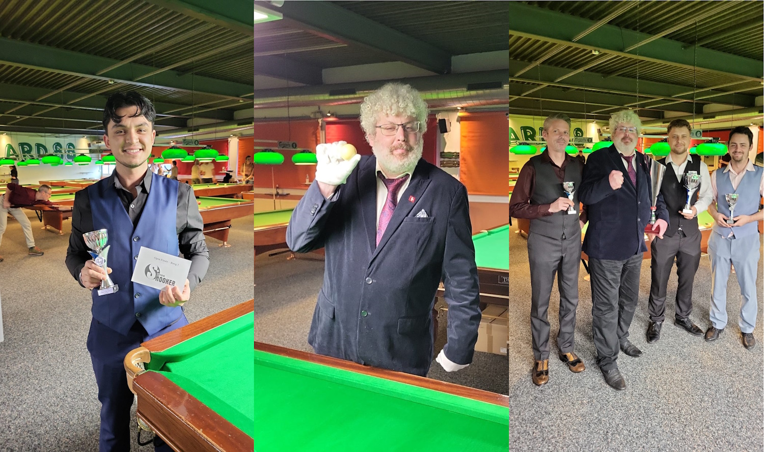 Wie schon im Vorjahr in Bern, stach auch diesmal beim Betreten des Clubs sofort die elegante Kleidung der Spieler auf, welche halt schon immer noch das gewisse Etwas ausmacht bei einem wichtigen Snooker-Turnier. Daher sei eine kleine Randbemerkung erlaubt: Man darf auch an Turnieren in Dresscode 1 oder 2 antreten, bei denen das gar nicht vorgeschrieben ist! Snooker lebt nicht nur von hohen Breaks, sondern auch von absoluter Ehrlichkeit, Fairness, sowie Eleganz und Stil. Lasst uns das doch immer wieder mal ein wenig zelebrieren.