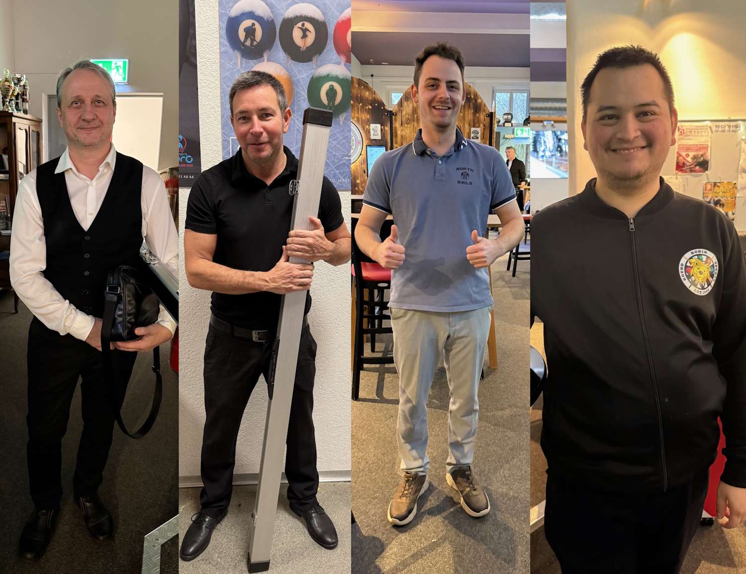 Die Favoriten, Kevin Wegmann und der soeben in die Liga A aufgestiegene Marc Schlatter setzten sich gegen Ali Sina Nijati und Michael Batt durch. Kevin erzielte mit einer 41 das höchste Break des ersten Tages des Finalturniers.