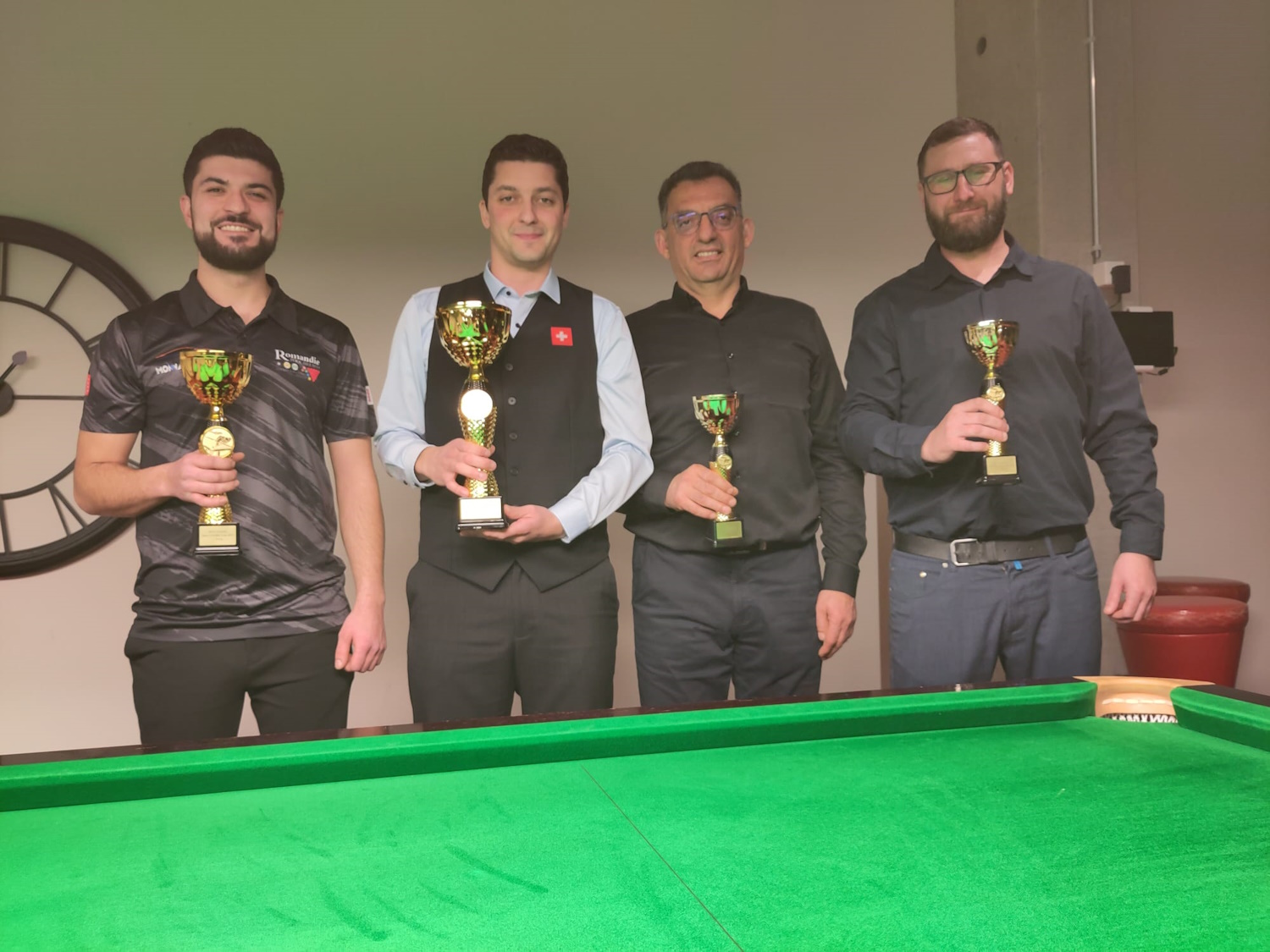 Gabriel startete gut und holte sich den ersten Frame gleich mit 58:0. Aber Alain wäre nicht Alain, wenn er sich das einfach so bieten liesse. Er konterte mit einer 71-er Total Clearance, dem höchsten Break des Turniers. Frame 3 war umkämpft, mit dem besseren Ende für Alain. Doch Gabriel liess sich vom Namen des Gegners nicht beeindrucken und holte sich Frame 4 mit 36:6. Erneut stand Alain mit dem Rücken zur Wand. Was tat er? Man ahnt es schon. Mit einem 64-er Break holte er sich den Sieg.
