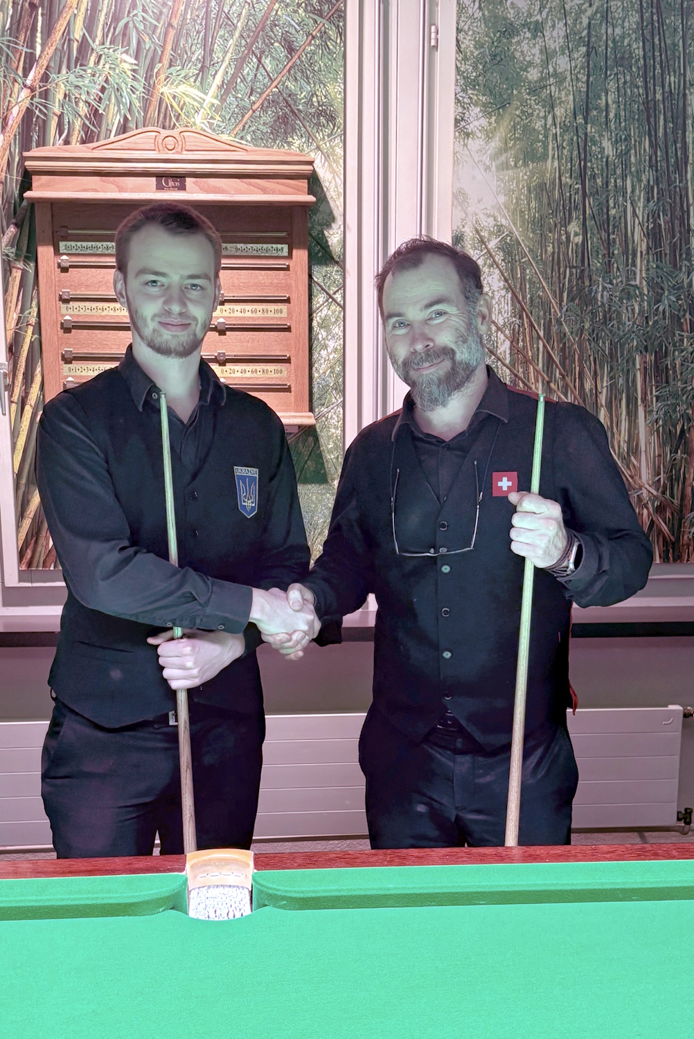 Im Finale mit Ref Mike Wapf, Scorer Angelika Lau/Kevin Wegmann, holte sich Denys mit einem 84er-Break den ersten Frame. Jonni schnappte sich mit zwei soliden Breaks Frame 2. Und Denys mit einer 71 Frame 3. Er spürte schon, dass er hier auf viel Erfahrung trifft. Im vierten Frame war lange nicht sicher, ob es einen Decider geben würde. Und wie es halt im Snooker teilweise sein kann. Ein Fluke von Denys auf die zweitletzte Rote raubte Jonni die Möglichkeit, den Frame zu gewinnen. Er kämpft bis zuletzt, aber es reichte nicht mehr.