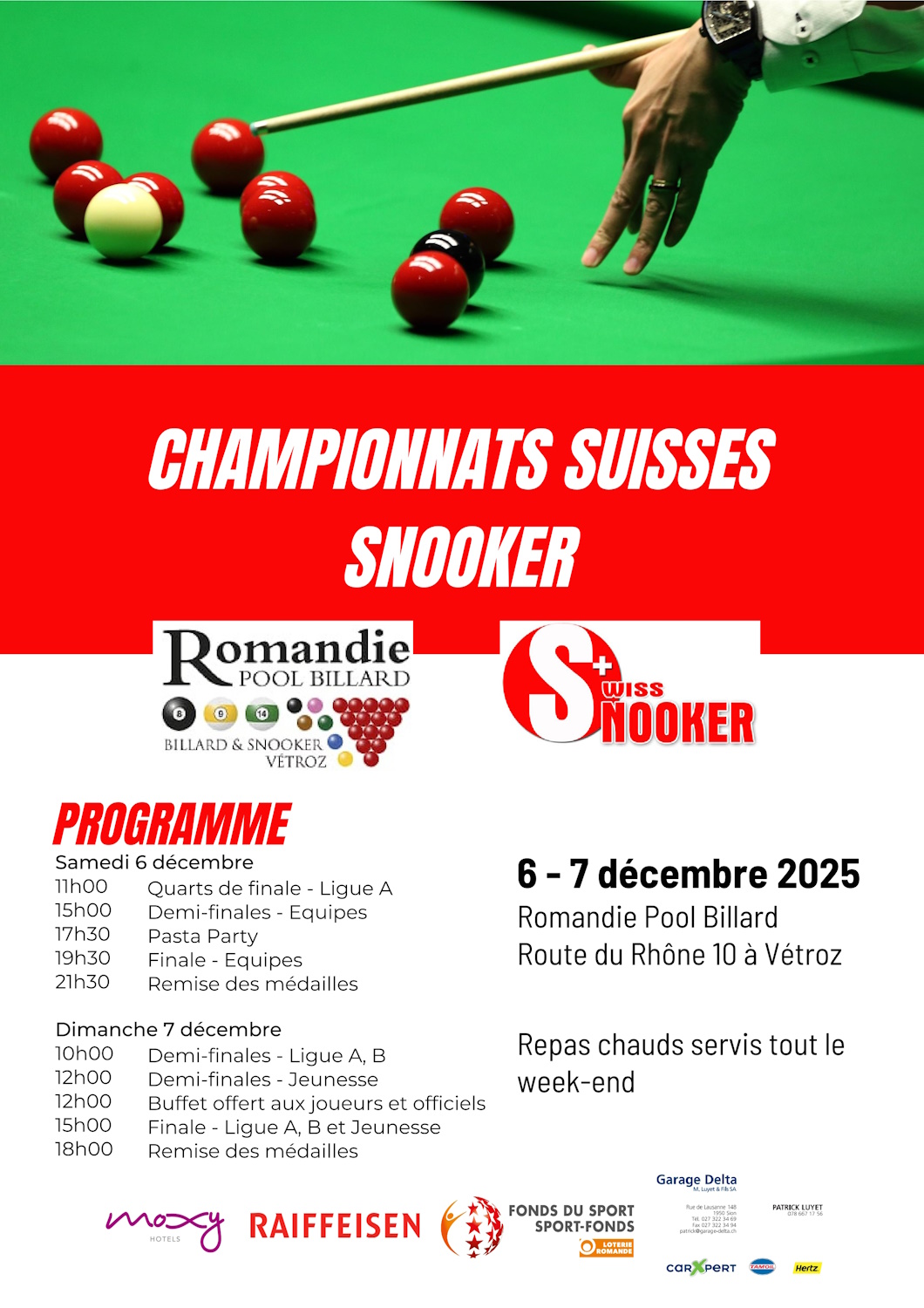 Swiss Snooker se réserve le droit d'apporter des modifications dans des cas exceptionnels.
