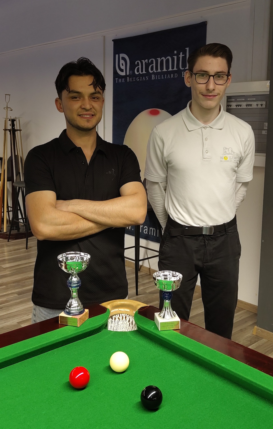 Nach dem Mittagessen mussten der ehemalige und der amtierende Juniorenmeister gegeneinander antreten. Ali Sina wurde im ersten Frame seiner Favoritenrolle gerecht und ging mit deutlichem Resultat in Führung. Dan warf nochmals alles in die Waagschale, lochte einige ganz tolle Bälle und schaffte tatsächlich den Ausgleich. Der Decider war eine knappe Sache, und am Ende fehlte nur ganz wenig für die Überraschung. Erst auf den allerletzten Kugeln konnte Ali Sina den Sieg in's Trockene bringen.